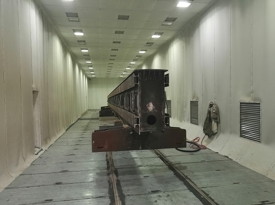 • 整個項目是對輕軌軌道等工件進行噴砂、噴漆、烤漆及空氣除塵(濾筒式)、廢氣凈化處理(活性炭吸附+催化燃燒系統),在確保噴涂質量及效率的同時注重環境保護,實現人與自然和諧發展;涂裝生產線PLC控制,自動化、智能化程度高!